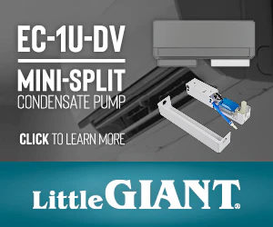 Sponsored | | The new EC-1U-DV brings the performance of our EC-1-DV Series of mini-split condensate pump to a slim undermount unit that installs easily and neatly underneath equipment. Built for reliable and quiet operation, the automatic condensate removal system works continuously to remove water from any ductless mini-split air conditioner. |