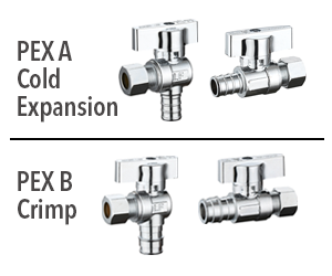 Advertisement | | Easyflex carries water supply stop valves for both PEX A and PEX B tubing. PEX A is the “crimp” style and PEX B is the “cold compression” version. |