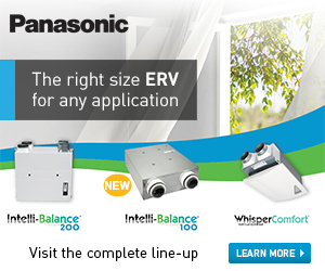 Panasonic offers a complete lineup of versatile ERVs ranging from 10 to 200 CFM for a constant supply of fresh air throughout the day. Our NEW Intelli-Balance™ 100 ERV mirror model simplifies ducting when installed in adjacent multi-family units.