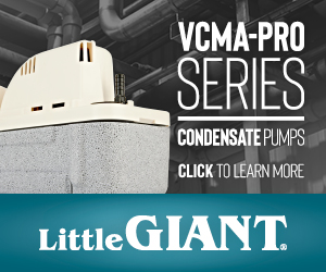 | | Advertisement | Little Giant's VCMA-20-PRO Series condensate pump provides a high-capacity option for the automatic collection and removal of condensate when gravity drainage is not possible. Its slim footprint makes this pump the optimal choice for tight spaces. |