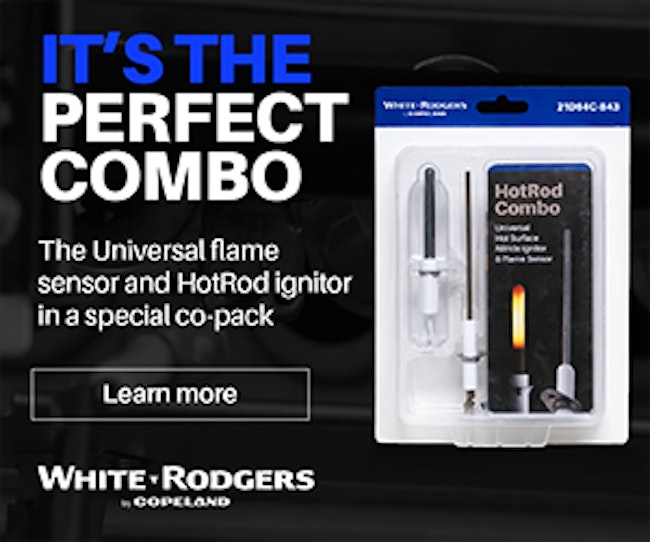 Sponsored | | Stock the White-Rodgers HotRod Combo by Copeland and be ready for the most common furnace failures. Featuring a Universal HotRod 120V ignitor and a Universal flame sensor, you can replace hundreds of part numbers and complete the job in one truck roll. |