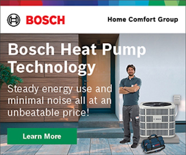| | Sponsored | | Bosch air-to-air heat pumps provide quiet and efficient home heating and cooling. Modulating inverter systems provide customers supremely efficient comfort by adjusting compressor capacity – smoothly ramping up production and using only the energy needed to achieve the desired temperature, resulting in reduced energy consumption and less stress on the system’s life cycle. |