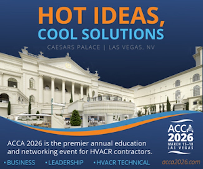 | | Sponsored | | Transform your business at ACCA 2026 in Las Vegas. From expert-led sessions to hands-on learning and exclusive networking, this conference gives HVACR contractors the tools and insights to stay competitive. Be part of the event that helps contractors win all year long. |