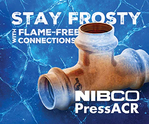 | | Sponsored | | NIBCO® PressACR® fittings and tools are designed to meet the demands of air conditioning and refrigeration applications. Systems can be dry-fit before crimping, and flame-free installations mean safer work sites. Now available in sizes 1/4" – 2-1/8". |